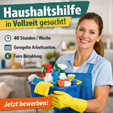 Für einen privaten Haushalt suchen wir ab sofort eine zuverlässige Haushaltshilfe in Vollzeit (40 Stunden pro Woche). Ihre Aufgaben: - Reinigung und Pflege des Haushalts - Wäsche waschen, bügeln und verräumen - Ordnung halten in Wohn- und Nebenräume…
